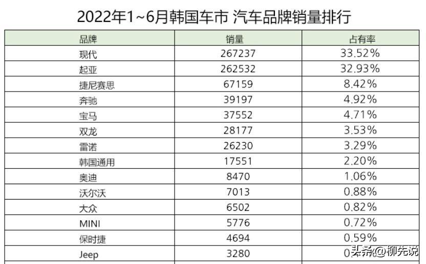 下面依據(jù)機(jī)構(gòu)整理出來(lái)的數(shù)據(jù),來(lái)了解下韓國(guó)汽車市場(chǎng)情況,看看韓國(guó)消費(fèi)者到底喜歡什么汽車品牌。2022年上半年,韓國(guó)車市汽車品牌銷量排行榜第14名是Jeep,市占率0.41%。Jeep汽車品牌創(chuàng)立81年時(shí)間,被不少人視為SUV的代名詞。品牌堅(jiān)持磨礪越野基因,憑借骨子里的自由、探索、本真、激情,帶領(lǐng)人們共同追尋對(duì)世界純粹的熱愛(ài);韓國(guó)車市汽車品牌銷量排行榜第13名是保時(shí)捷,市占率0.59%。