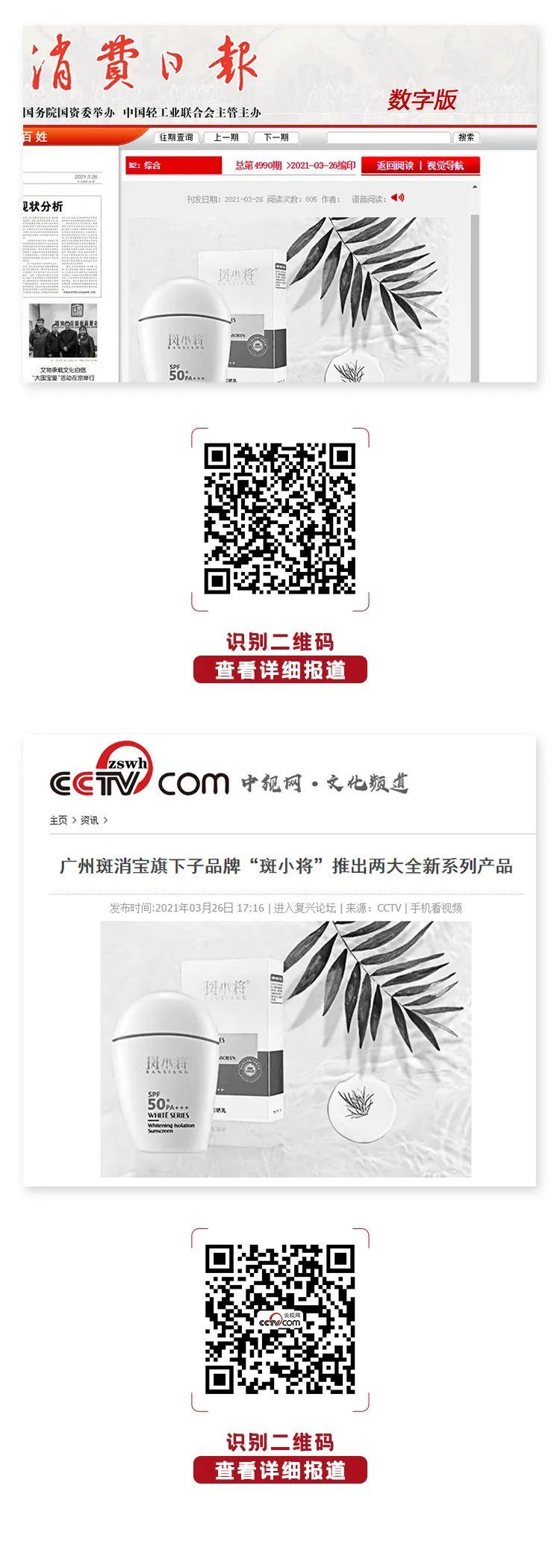 其中,媒體《消費日報》以及網(wǎng)絡媒體不僅對斑小將2020年底推出的“臻萃”、“臻顏”系列產品以及2021年的單品“斑小將美白隔離防曬乳”做出了報道,同時也對美白祛斑類化妝品行業(yè)現(xiàn)狀進行了客觀的解讀。