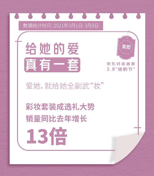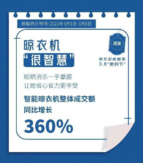 京東大數(shù)據(jù)顯示,3月1日-8日“她的節(jié)”期間,京東時尚居家彩妝套裝銷量同比去年增長13倍,美膚花灑成交額同比增長5倍,智能晾衣機整體成交額同比增長360%......時尚居家好禮無疑為女性的生活增添了更多精致、時尚氣息,并促使“禮在京東”占據(jù)了更多用戶心智。