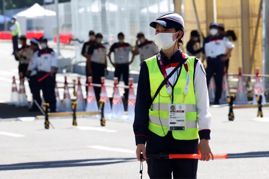 7月17日,日本東京,安保人員在東京奧運(yùn)村入口處站崗。/IC photo