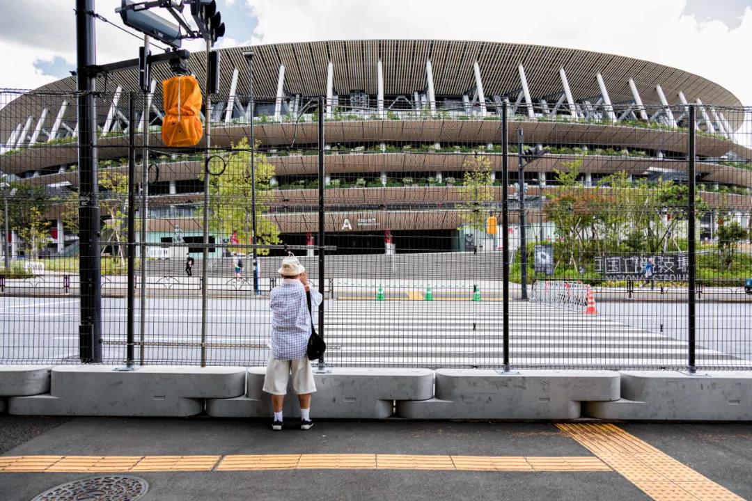 8月3日,日本東京,一名男子路過東京的奧林匹克體育場(chǎng)。/IC photo