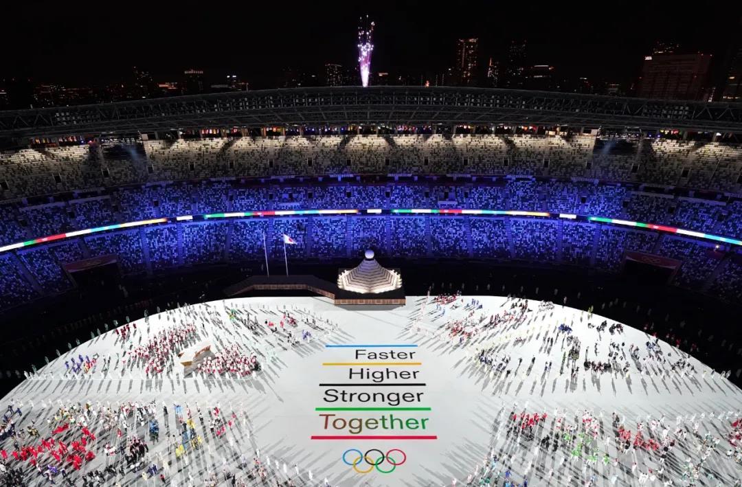 7月23日,日本東京,2020東京奧運(yùn)會(huì)開幕式?,F(xiàn)場(chǎng)展示全新奧林匹克格言。/IC photo