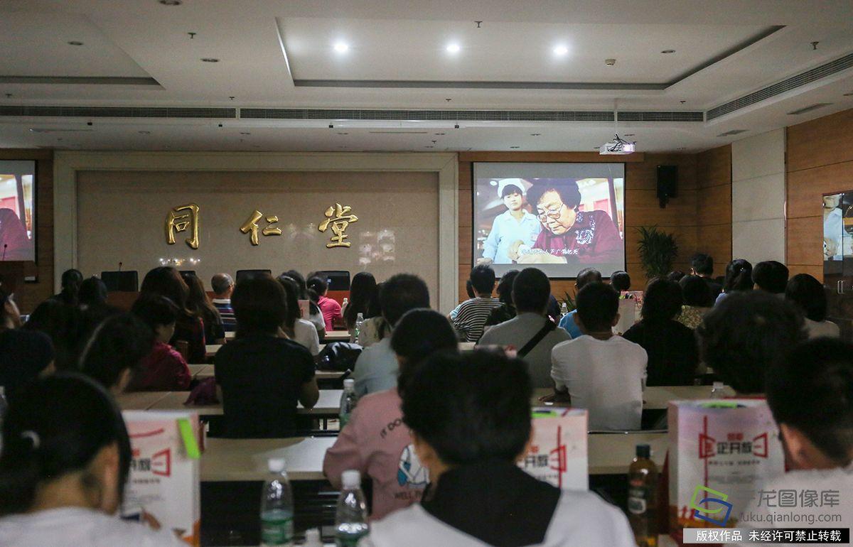 6月2日,近百名市民來到北京同仁堂科技發(fā)展股份有限公司亦莊分廠一同發(fā)現(xiàn)金字招牌的秘密。圖為市民觀看宣傳片( 圖片來源:tuku.qianlong.com)。千龍網(wǎng)記者 耿子葉攝