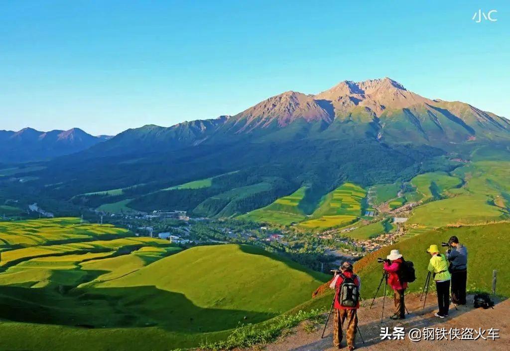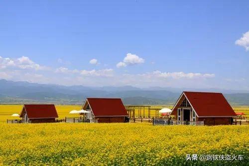 翻過達坂山埡口即可看到青石口鎮(zhèn)全景,到達觀景臺可以360度無死角看到周邊萬畝油菜花。
