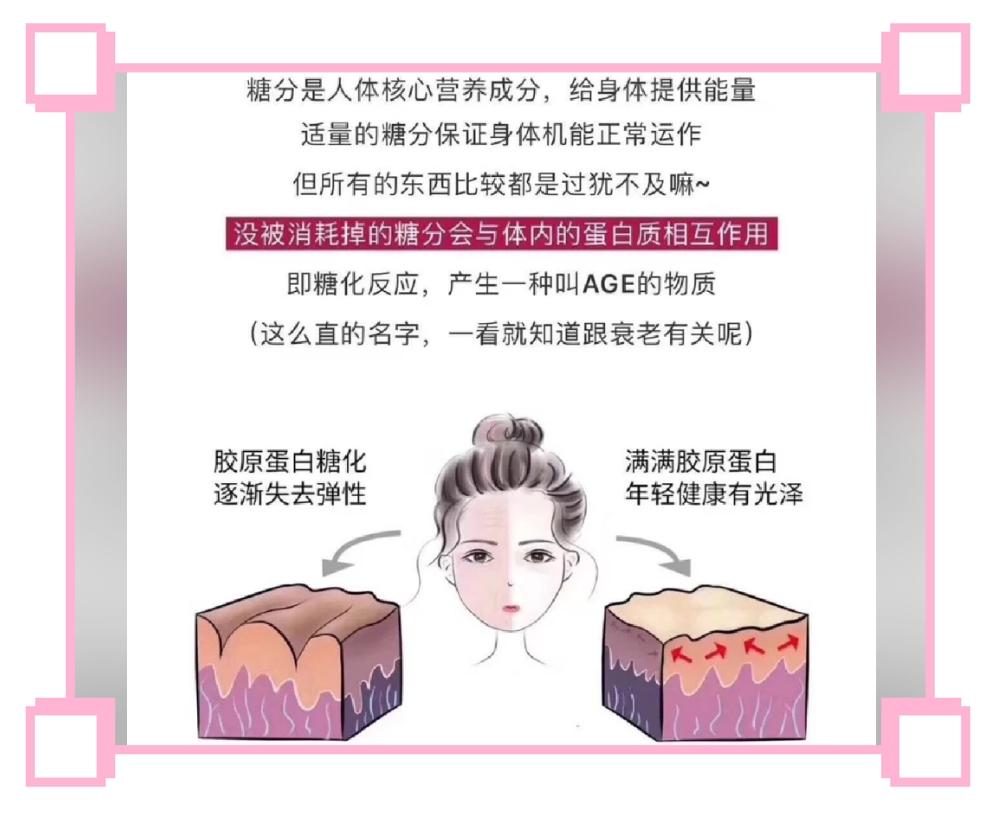 有句老話說得好“愛吃甜食的人,老得快”,抗糖化就是這個(gè)道理。多余的糖分會(huì)和體內(nèi)的蛋白質(zhì)結(jié)合,讓“白白胖胖”的蛋白質(zhì)變黃,青蔥少女也就變成了半老徐娘。
