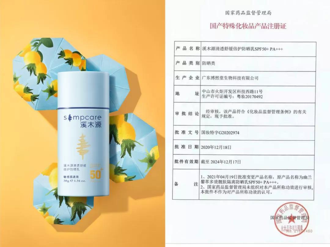 有一個(gè)例子可以直觀地呈現(xiàn)這個(gè)布局之早——持著需要花費(fèi)一到兩年甚至更長(zhǎng)時(shí)間才能拿到手的美白特證、防曬特證,溪木源在今年上線了美白特證櫻花面膜、防曬特證敏肌高倍防曬乳。