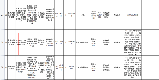 采潔防曬霜標(biāo)簽標(biāo)示與批件一致。但未檢出批件及標(biāo)簽標(biāo)示的防曬劑:4-甲基芐亞基樟腦、丁基甲氧基二苯甲?;淄椤W克立林、甲氧基肉桂酸乙基己酯。標(biāo)示委托方“上海金泊萊雅化妝品有限公司”確認(rèn)生產(chǎn),標(biāo)示受托方“廣州市采潔化妝品有限公司”否認(rèn)生產(chǎn)。
