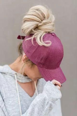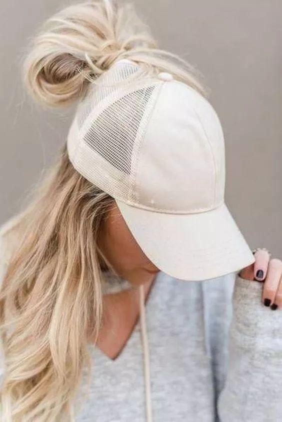 棒球帽還有一大好處就是它具有束發(fā)功能,可以選擇扎個(gè)隨性的丸子頭或者半丸子頭,把高扎的丸子從后面調(diào)節(jié)大小的地方穿過去,然后稍稍拉扯制造出蓬松感,低調(diào)又時(shí)髦。