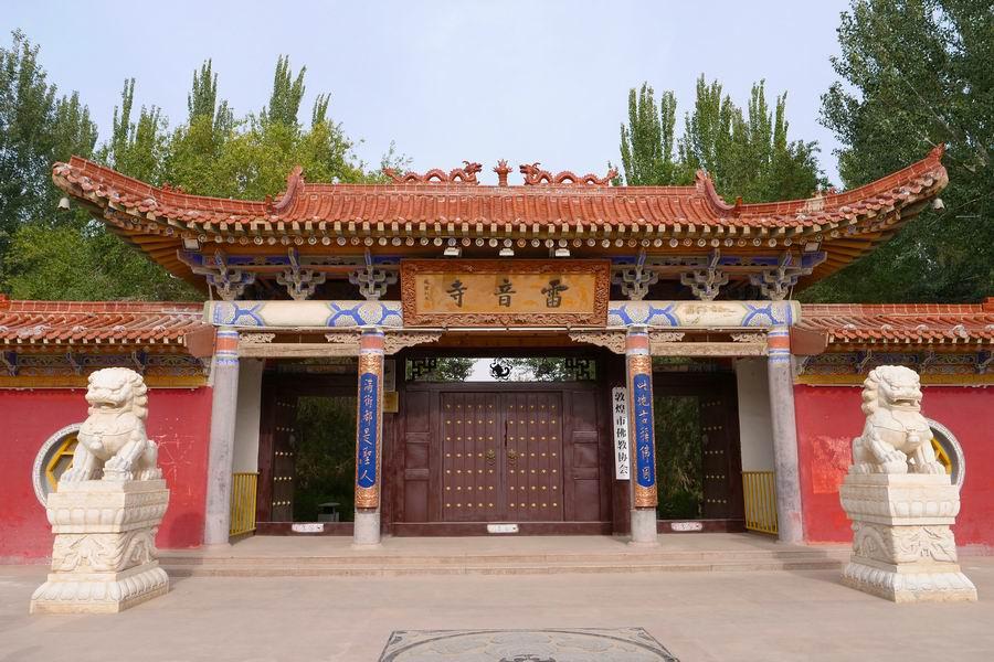 漢唐風格的敦煌雷音寺與鳴沙山比鄰而居,距離敦煌博物館約3公里,可乘公交車前往。傳說古時在月牙泉附近有雷音寺,后被風沙所埋。1989年,國內(nèi)外佛教團體和敦煌市佛教協(xié)會捐贈重建雷音寺。2008年,經(jīng)敦煌市政府批準,在寺旁征地,雷音寺得以擴建。新寺院以莫高窟172窟經(jīng)變壁畫的建筑結(jié)構(gòu)布局為藍圖,對山門、天王殿、大雄寶殿、陳列館等設(shè)施進行了改造、維修和擴建,重現(xiàn)了唐式佛教寺院風格。