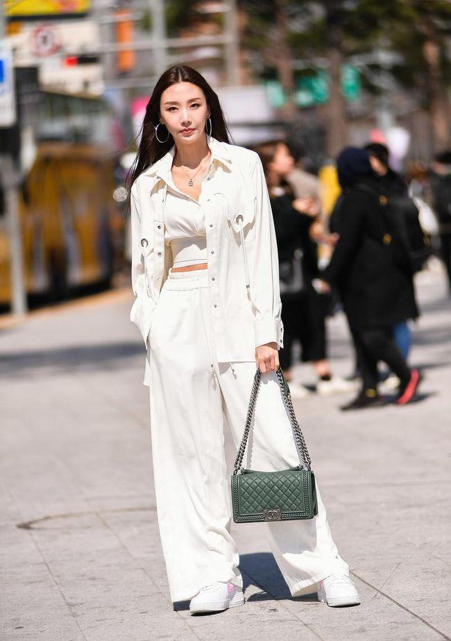鞋子可以選擇運(yùn)動(dòng)鞋,整體比較偏休閑風(fēng)。而西裝款比較板正,適合職場的女性,可以搭配一件白色的小背心,下裝搭配一件黑色的短裙等,比較具有俏皮感。