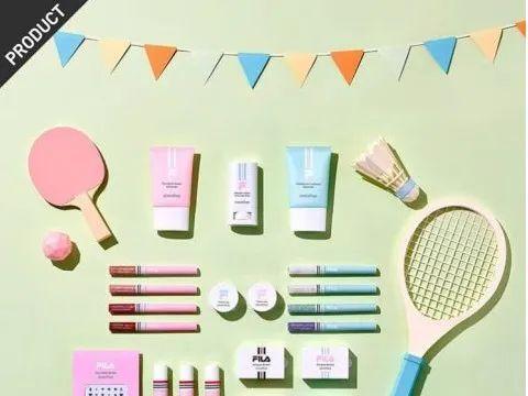 2019年,韓國彩妝護膚品牌Innisfree與運動品牌FILA聯(lián)手推出“運動會EDITION”,產(chǎn)品包括防曬、唇彩、眼影、眼蜜以及蜜粉等,應(yīng)用了FILA經(jīng)典的紅藍(lán)彩色線條,將運動和元氣體現(xiàn)在包裝上。