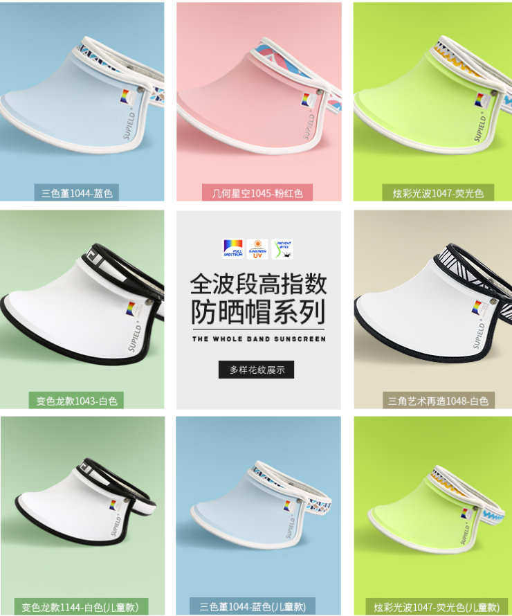 防曬值>600+,高防曬倍數防曬指數越高,防曬能力越好。按照標準GB/T 18830-2009《紡織品 防紫外線性能的評定》中要求紡織品防紫外線性能UPF>40即可。而作為專業(yè)級的防曬用品,素湃防曬帽特意開發(fā)了一種光學面料——素湃4色防曬面料,將防曬指數做到了UPF值均>600+!(白色為614,粉色1504、黃色1705、藍色高達2000)。