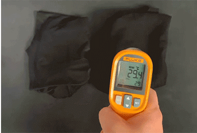 測(cè)溫槍實(shí)測(cè):普通T恤為29.4℃,而蛋白抗菌T恤為24.3℃,整整差了5℃,走在太陽底下身上也不會(huì)被曬得發(fā)燙!