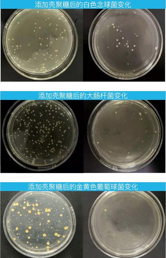 通過對(duì)比添加了殼聚糖的衣服,和未添加殼聚糖的衣服,可以的看到,添加了殼聚糖的衣服中,細(xì)菌會(huì)逐漸失去活性,自然脫落。