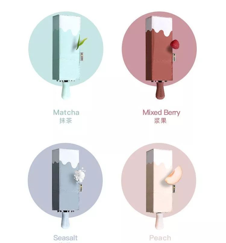 比如現(xiàn)在火的就是這把雪糕傘了。乍一眼一看,真以為是幾根水果奶油口味的冰棒呢。