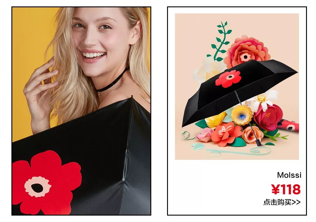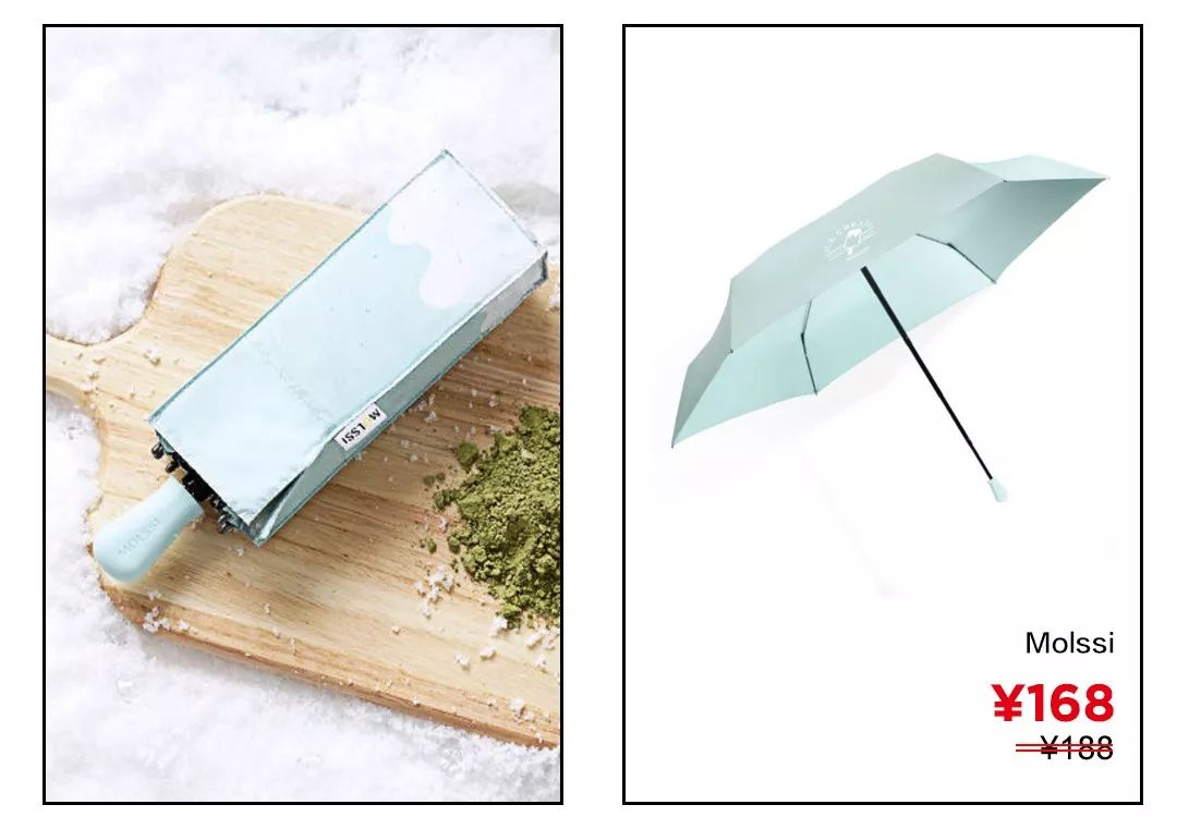 Molssi的傘相比前面幾個(gè)牌子更加注重設(shè)計(jì),它是有原創(chuàng)設(shè)計(jì)精神的獨(dú)立傘具品牌,防曬的同時(shí),也給你更多樂趣。
