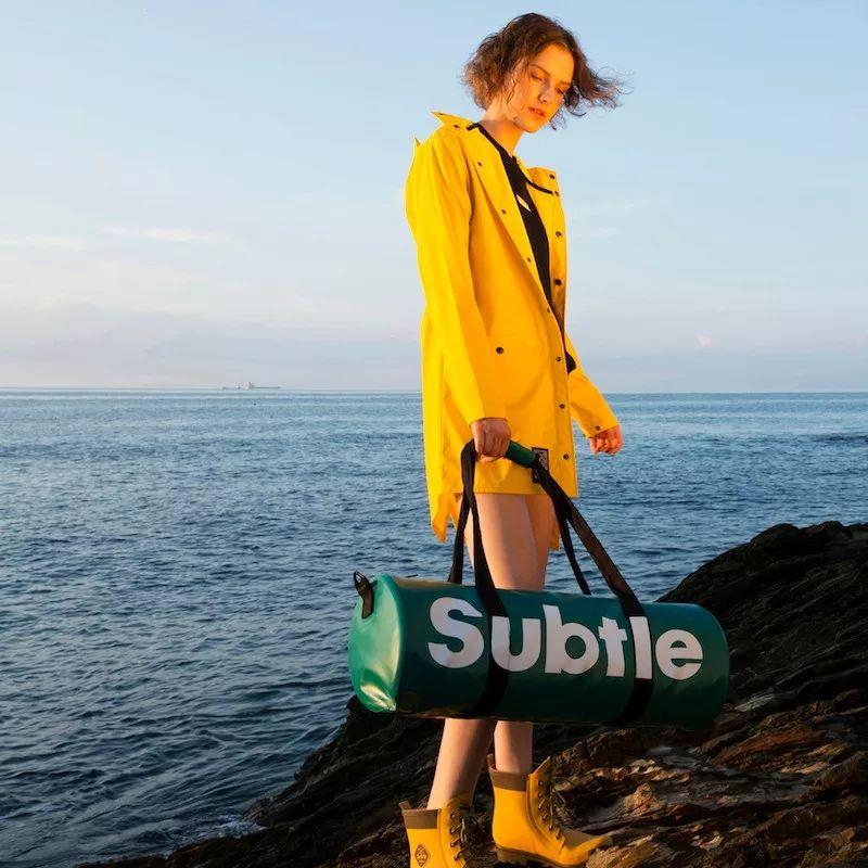 前面說的都是專門做傘的牌子,后提一提這個(gè)Subtle這個(gè)香港街頭潮牌。編輯第一次注意到它是因?yàn)檫@件很酷的檸檬黃雨衣,感覺設(shè)計(jì)簡(jiǎn)單,又很好搭,還特別抓眼球。