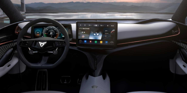 外觀方面,前臉表明了Cupra的新家族化設(shè)計,大燈造型簡潔犀利,并采用led光源,帶有“CUPRA“標志的上格珊與兩側(cè)大燈連接在一起,熏黑處理的下格珊采用內(nèi)凹設(shè)計,內(nèi)部有古銅色系點綴。