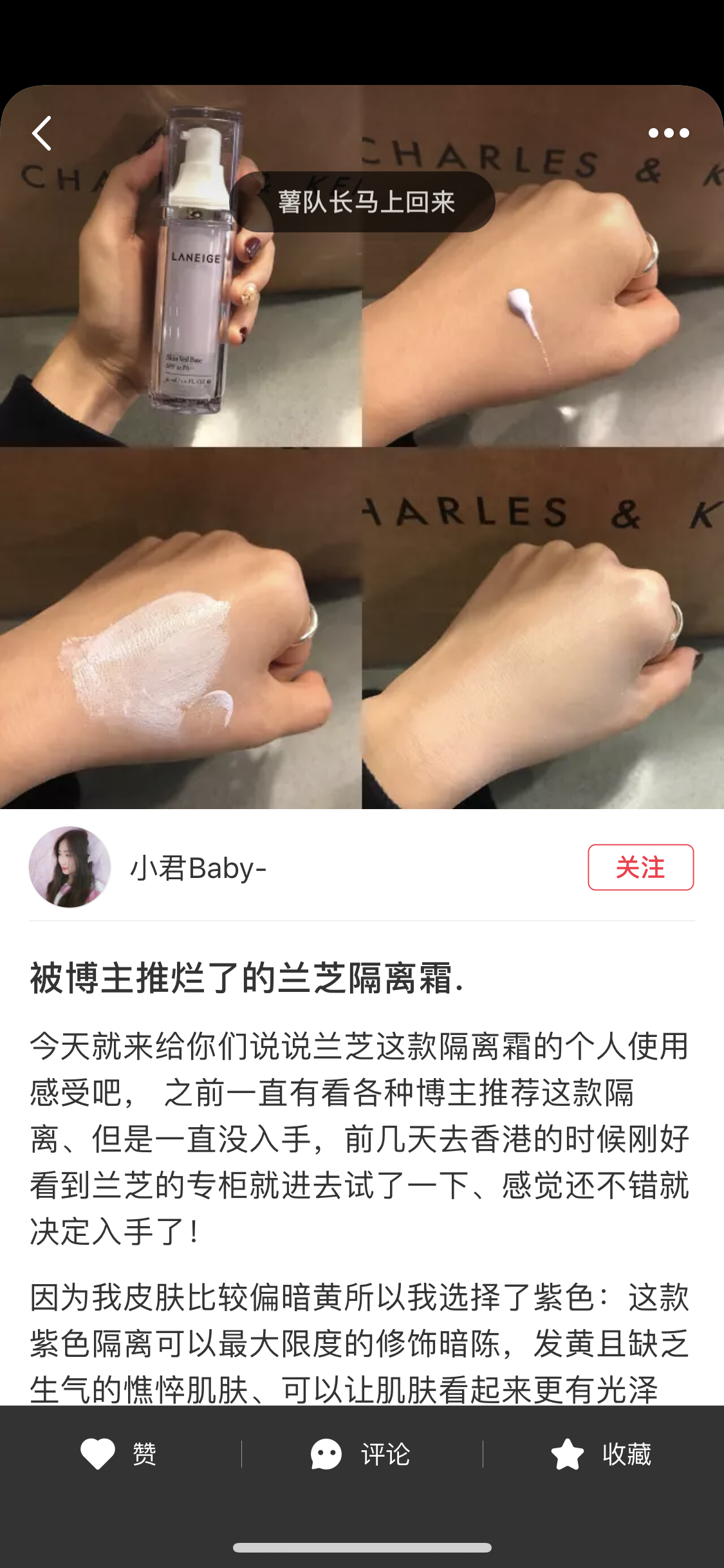 產(chǎn)品質(zhì)地產(chǎn)品的整體質(zhì)地為乳霜狀質(zhì)地,有一股淡淡的香氣。整體不是很黏稠,屬于偏水乳狀,延展性很好,輕輕一抹就推開了,滋潤度和保濕果也不錯(cuò)。使用感受這款蘭芝的隔離霜整體質(zhì)地清透水潤,使用時(shí)膏體能夠很好地推開并吸收,保濕滋潤果不錯(cuò)。使用后膚色較之前更為白皙細(xì)嫩,能夠很好地調(diào)節(jié)并提升膚色,對于一些小瑕疵也有一定的遮蓋果,妝前使用的話能夠使之后的上妝更加服帖。