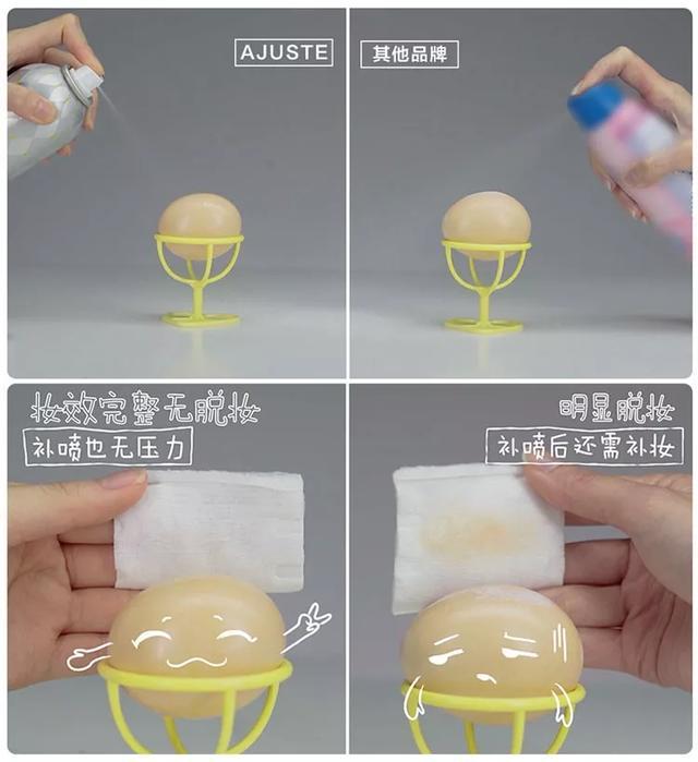 這款防曬不僅防曬果好,它的定妝果也是超棒的!我們做過(guò)一個(gè)簡(jiǎn)單的對(duì)比試驗(yàn),發(fā)現(xiàn)愛(ài)伽絲防曬噴霧可直接充當(dāng)定妝產(chǎn)品,噴到臉上幾乎是不脫妝的呢~