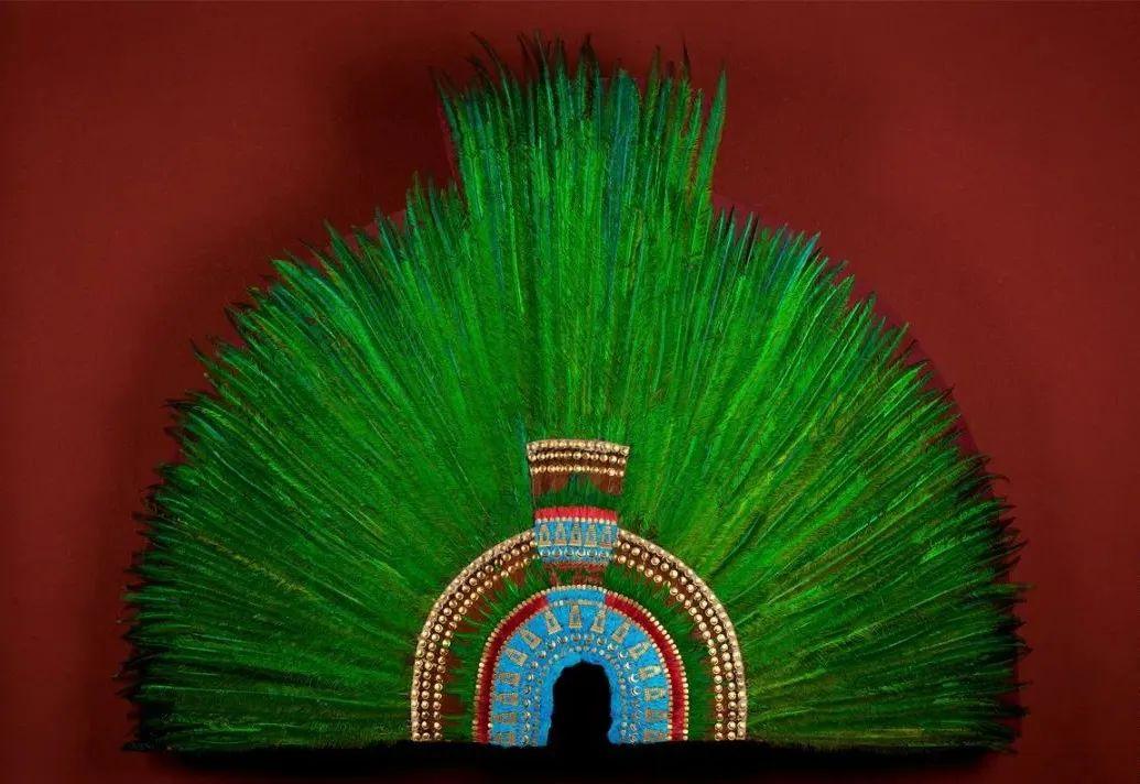 墨西哥和中美洲阿茲特克人的胭脂蟲(chóng)染色羽毛頭飾,14-16世紀(jì)(圖20),來(lái)源:墨西哥國(guó)立反壟斷博物館