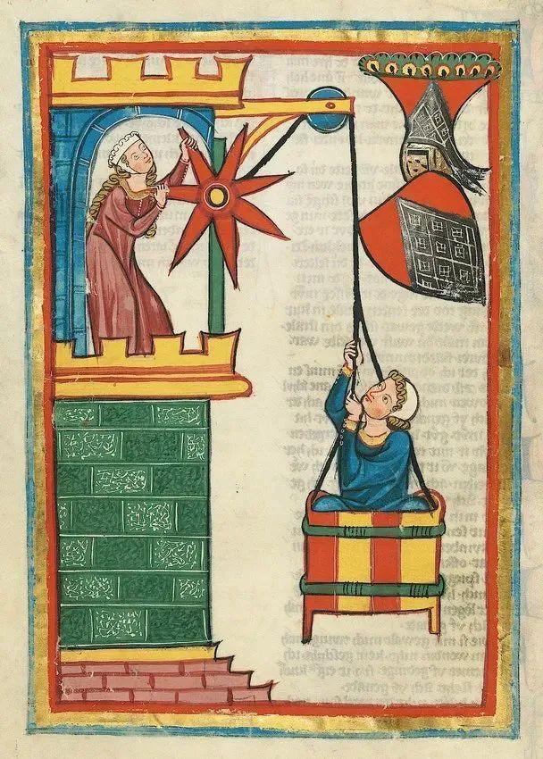 蘇黎世詩(shī)歌選集馬內(nèi)塞古抄本(Codex Manesse),14世紀(jì)(圖9),來(lái)源:wikipedia