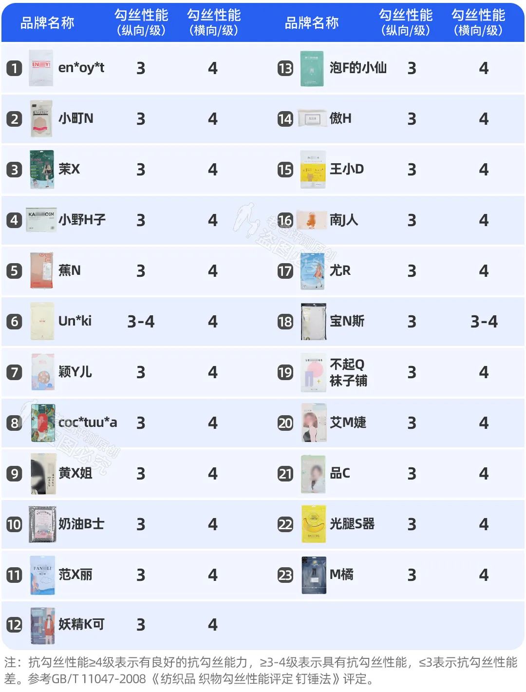我們參照GB/T 11047-2008 《紡織品 織物勾絲性能評定 釘錘法》,測了光腿神器的抗勾絲能力。