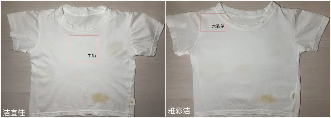 其中,韓奏、潔宜佳、雅彩潔,對(duì)于個(gè)別污漬的去除表現(xiàn)稍遜一點(diǎn)。