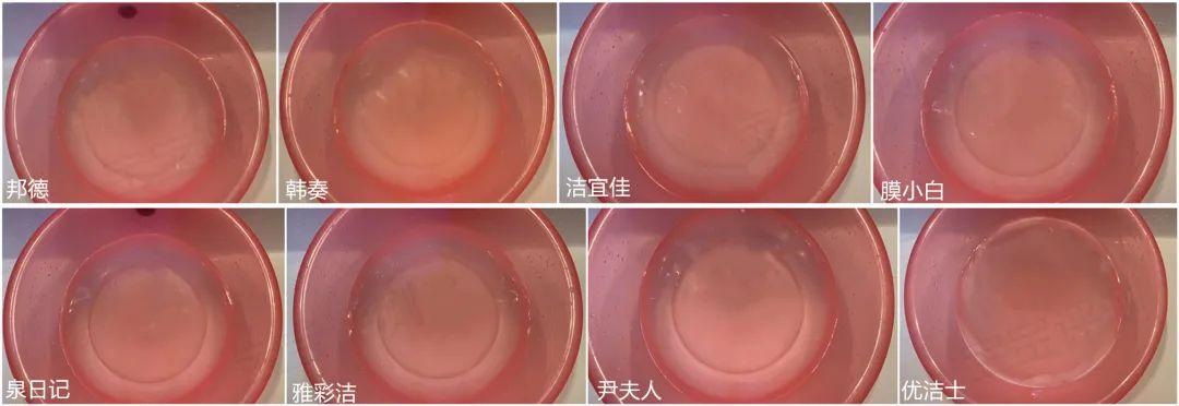 1、8款爆炸鹽中,膜小白、潔宜佳、優(yōu)潔士、雅彩潔,爆炸鹽溶解于熱水會(huì)產(chǎn)生豐富的泡沫。