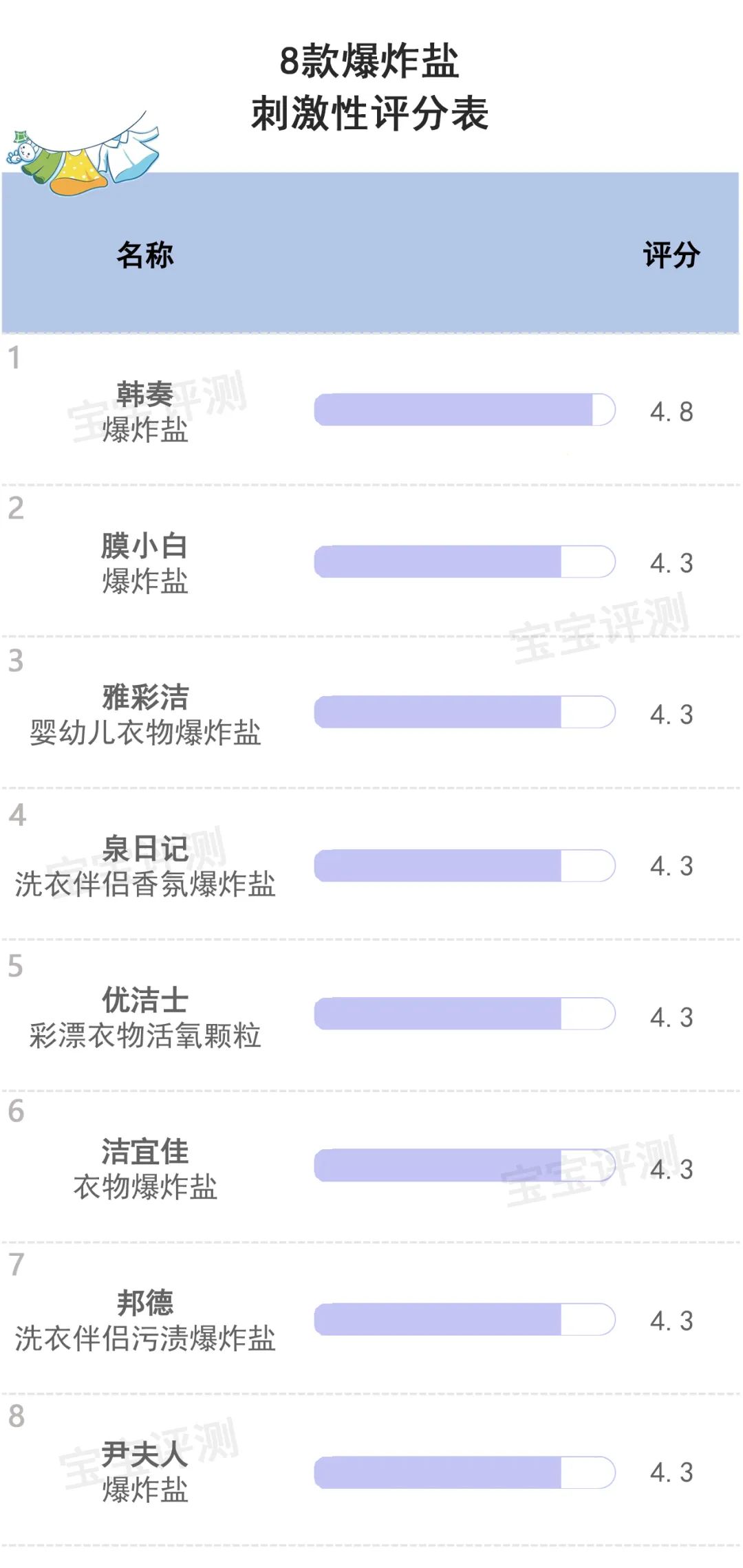 2、韓奏爆炸鹽溶液的pH實(shí)測(cè)值在7左右,接近中性,但它的去污力也是8款產(chǎn)品中差的。