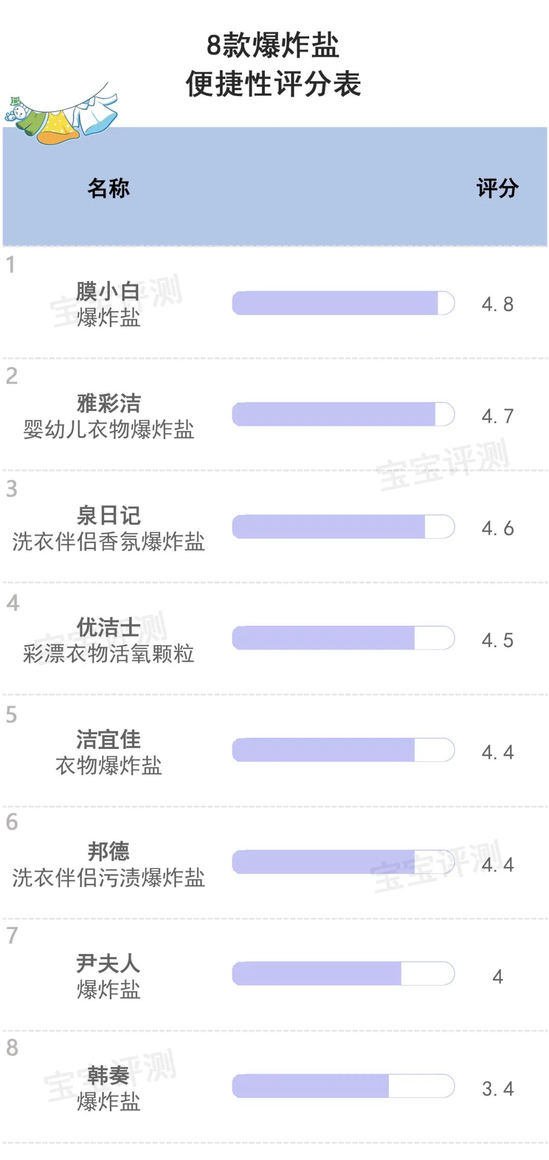 對(duì)于評(píng)測(cè)的8款爆炸鹽,為給大家提供一個(gè)相對(duì)比較直觀的參考,笨爸爸對(duì)它們進(jìn)行了綜合評(píng)分及排名: