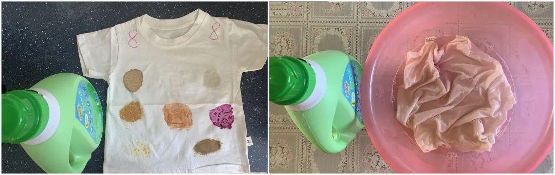 ④2小時(shí)后,對(duì)白T進(jìn)行漂洗、晾曬,待徹底晾干后,比較每件白T的干凈程度。