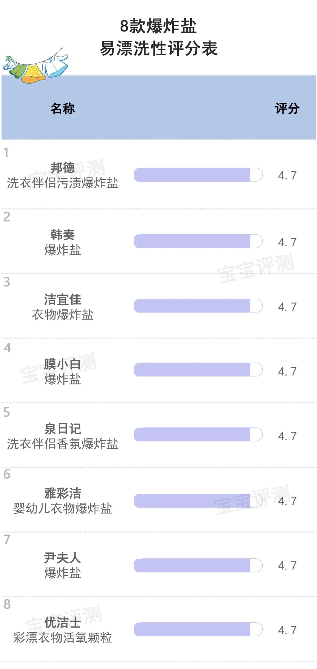 另外,爆炸鹽的溶解需要較高的水溫,水溫越高,溶解越充分,但高溫也可能會(huì)導(dǎo)致一些衣物變形、褪色,所以爆炸鹽一般不適合洗真絲、羊毛、皮革類服飾,對(duì)于衣物上的亮片、膠印圖案也可能有一定的破壞性。