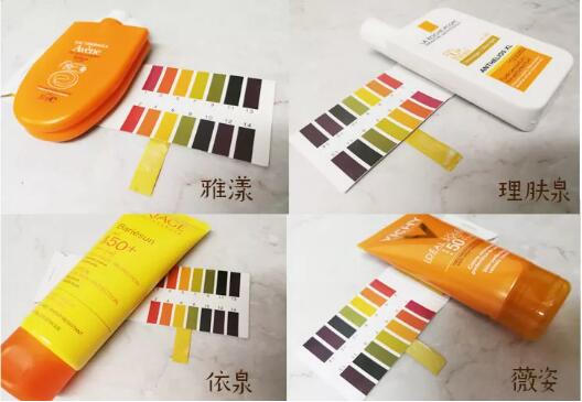 四款防曬的PH值都在7以下,