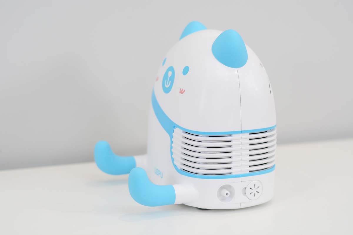 Part.1這臺霧化器叫“佳萌”,是樂普專為兒童用戶推出的產(chǎn)品。下面就是主機了,物如其名,外觀做得比較萌,藍色的小熊背個“書包”(感覺缺了兩只胳膊),Q萌可愛,很難把它和醫(yī)用物品聯(lián)系到一起。