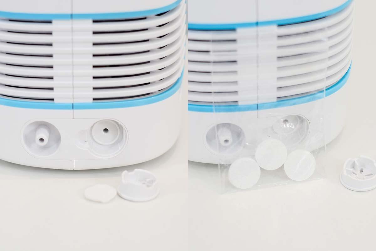 再往下看,這兩個位置一個是進氣孔,另一個是出氣孔。進氣孔里面有過濾棉,是用來凈化進氣的,這樣從出氣孔里出來的壓縮氣體才衛(wèi)生,霧化藥物的時候也就更。所以我覺得這東西還是挺重要的,要定期清洗更換,可惜它只送了3片,后期只能自己diy了。