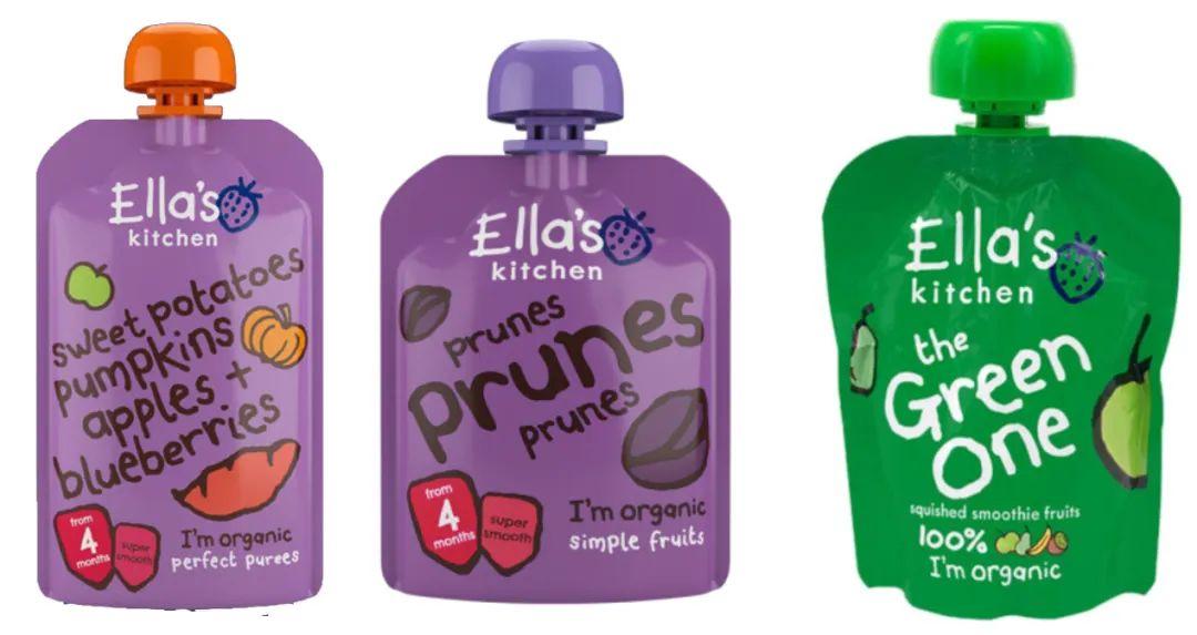 不合格項目:1批次Ella's Kitchen甜薯南瓜蘋果藍莓蔬果泥、1批次Ella's Kitchen西梅果泥、1批次Ella's Kitchen綠色混合果泥(原產(chǎn)國:西班牙),總鈉檢出值均低于產(chǎn)品包裝標簽明示值的80%。