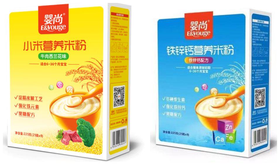 不合格項目:1批嬰尚小米營養(yǎng)米粉(牛肉西蘭花味)、1批次嬰尚鐵鋅鈣營養(yǎng)米粉(鐵鋅鈣配方),維生素A檢出值低于食品標準。