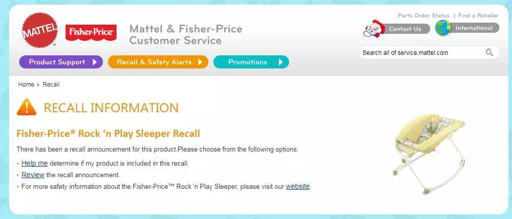 就在國內(nèi)宣布召回的4天前,美國消費品委員會(CPSC)發(fā)布通報,宣布召回費雪玩具公司生產(chǎn)的全部型號Rock‘n Play Sleeper嬰兒搖床(該產(chǎn)品在中國的型號為FHW27),共計約470萬件。
