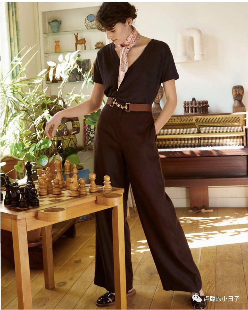 其實(shí)像這種比較素色且簡潔的衣服,才會是大部分法國女人日常會穿的搭配。