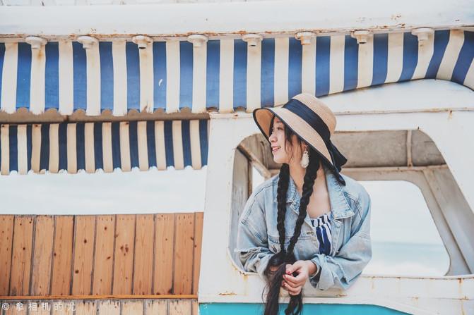 去海邊,淡藍色可愛風也是我大愛的之一,專門選了個可以遮手臂贅肉的,粗手臂也不怕了。即使有時天氣不好,隨意搭配一條短褲或者裹裙,都不失意境與味道。