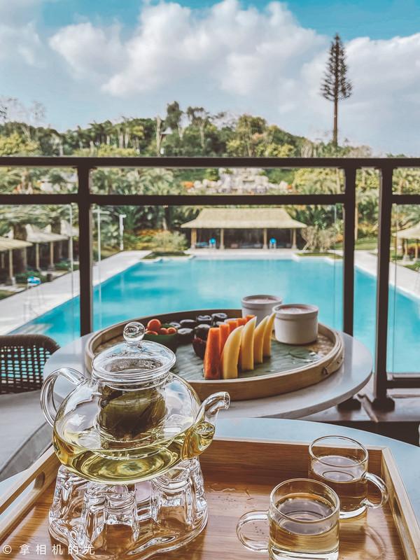 溫一壺茶水,品海南小食,遠眺綠意盎然的熱帶雨林和眼前的一抹蒂芙尼藍,感受微風拂面,松開那些會捆綁你的事情。無論是獨處,還是三五好友,都把時光定格在了這里。