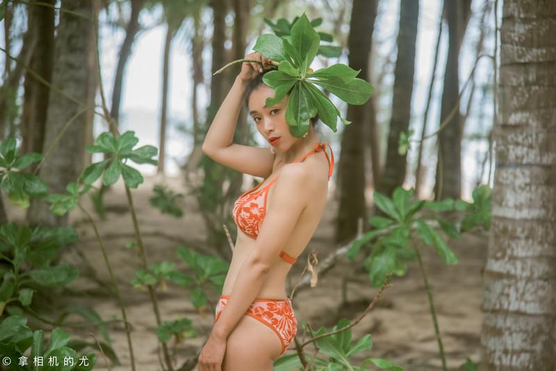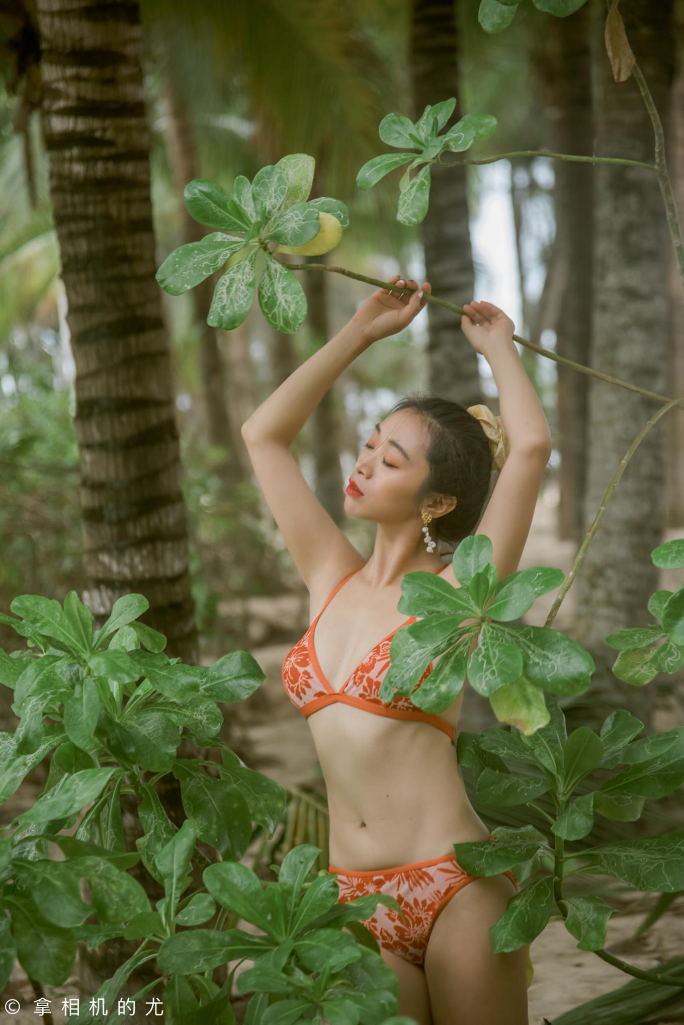 橙色印花系很適合拍攝樹林,熱帶風情感十足,帶來好心情,海邊的植物都帶著一種特別的生命力。