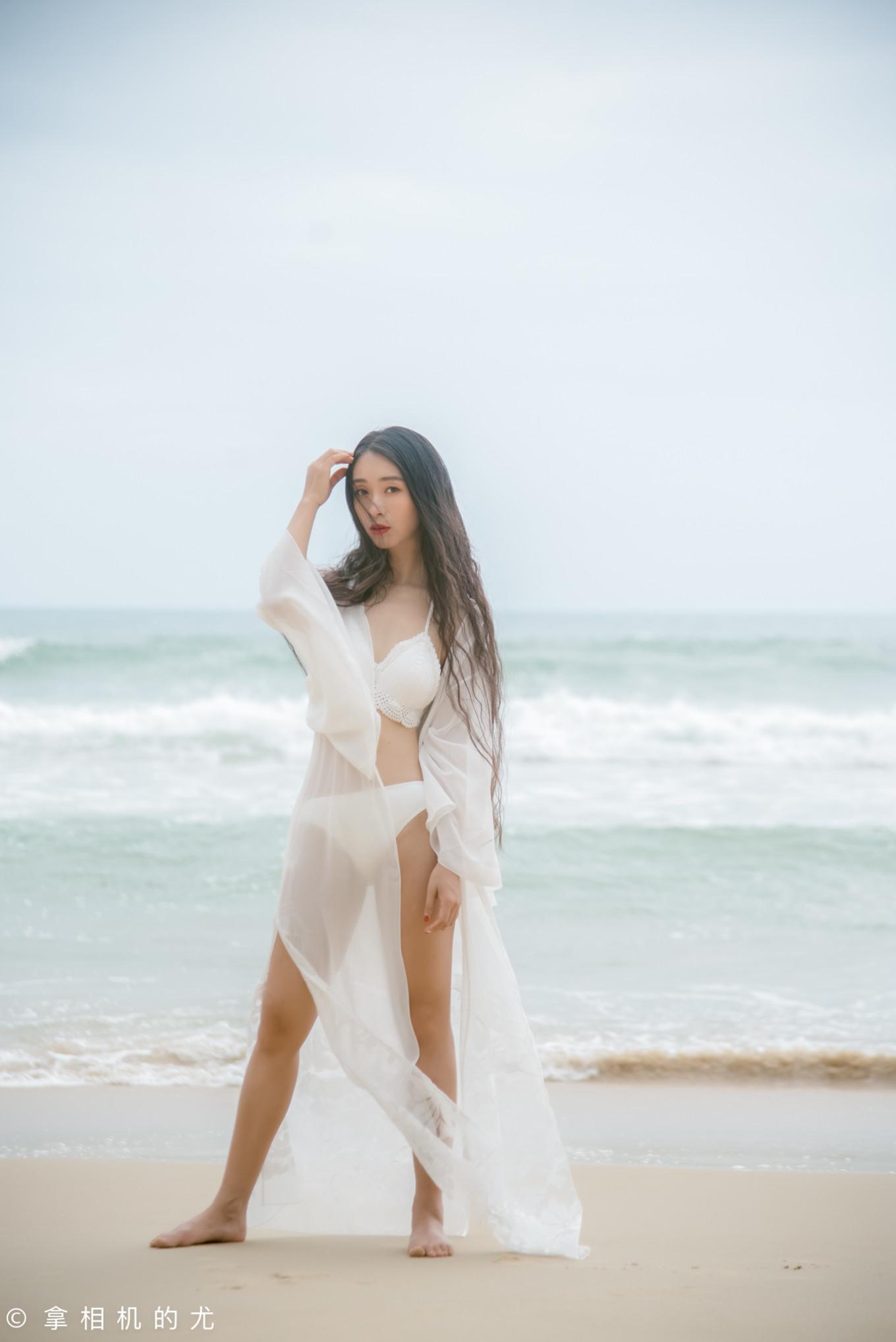 純白比基尼也是經(jīng)典,鉤針款搭配一件防曬衫,很有歐美風。防曬衫的蕾絲很有垂墜感。