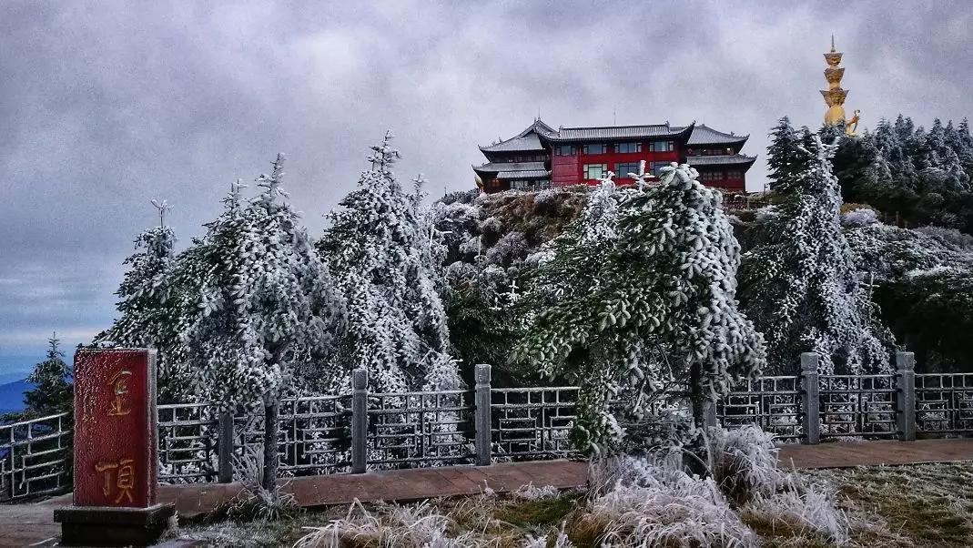 11月下旬,峨眉山紅葉彩林還未完全謝幕,卻不料一夜之間冰雪襲來,山上“霜花”燦爛,寒氣逼人!