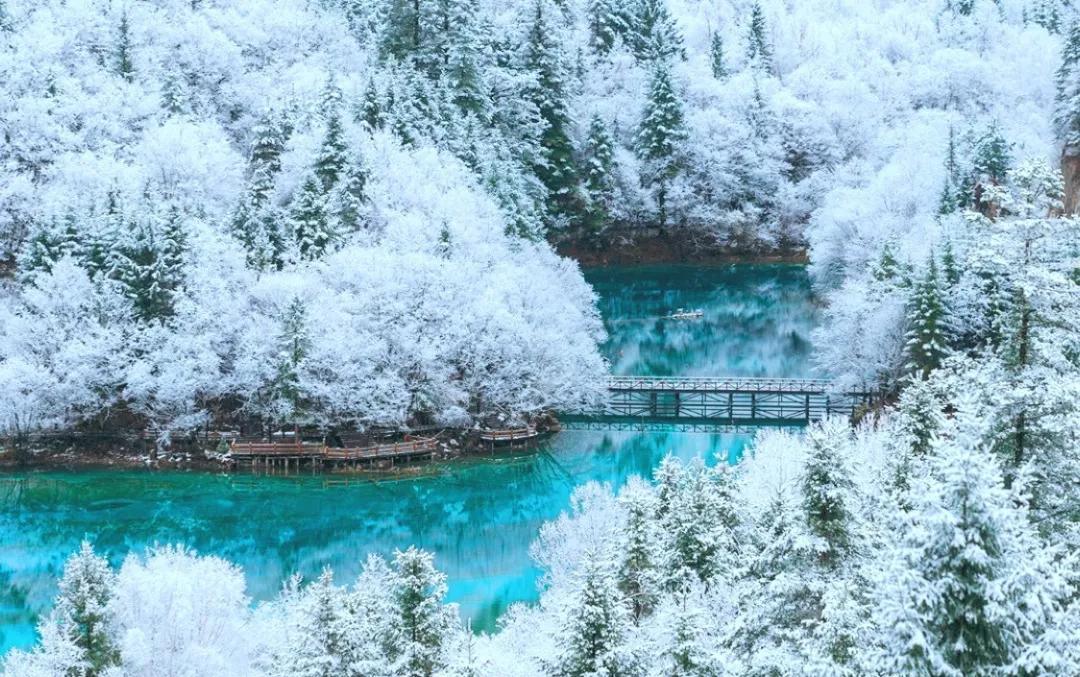 昨天一場漫天飛雪在九寨溝落下,讓整個景區(qū)變成了夢幻般的冰雪世界。被雪覆蓋的景區(qū)像是被施了魔法一般,如夢如幻,恍如仙境。