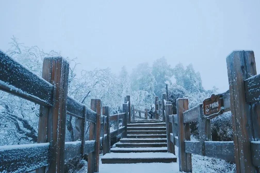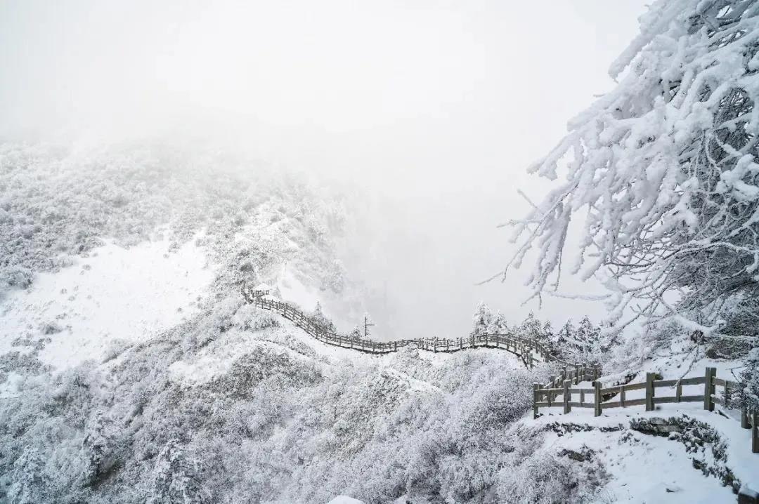 雪蓋百里,美似圖畫,褪去紅葉盛裝的這座川東名山,看來雪景也是美到讓人心動!