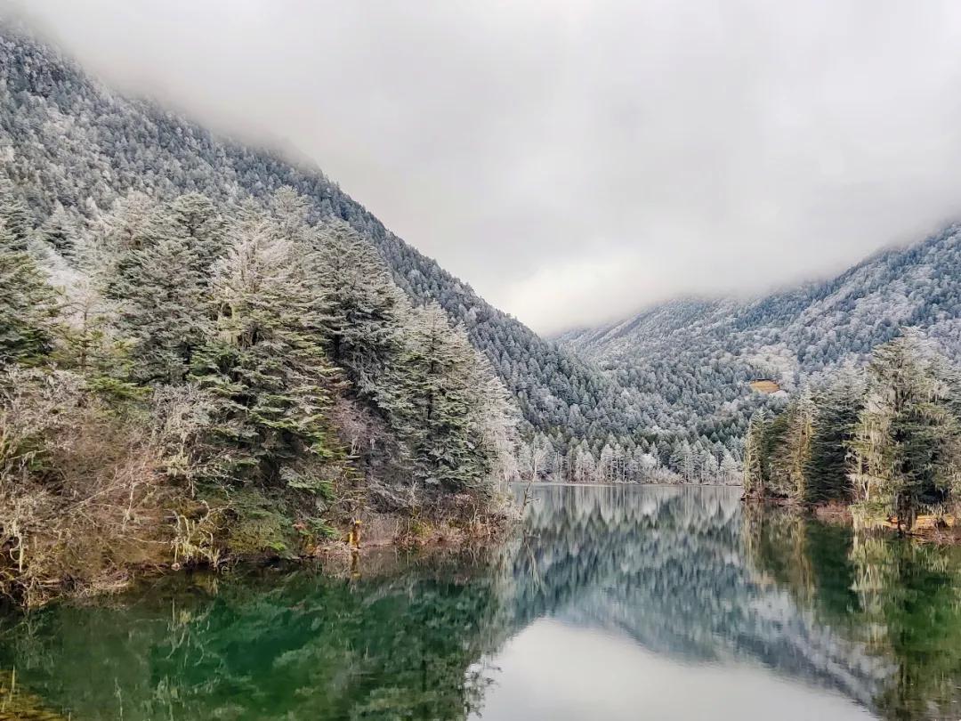 海子的碧藍與雪的純白相呼應(yīng),四周白茫茫一片,安靜得仿佛時間靜止了一般。這樣的場景讓人心無雜念,沉醉其間。