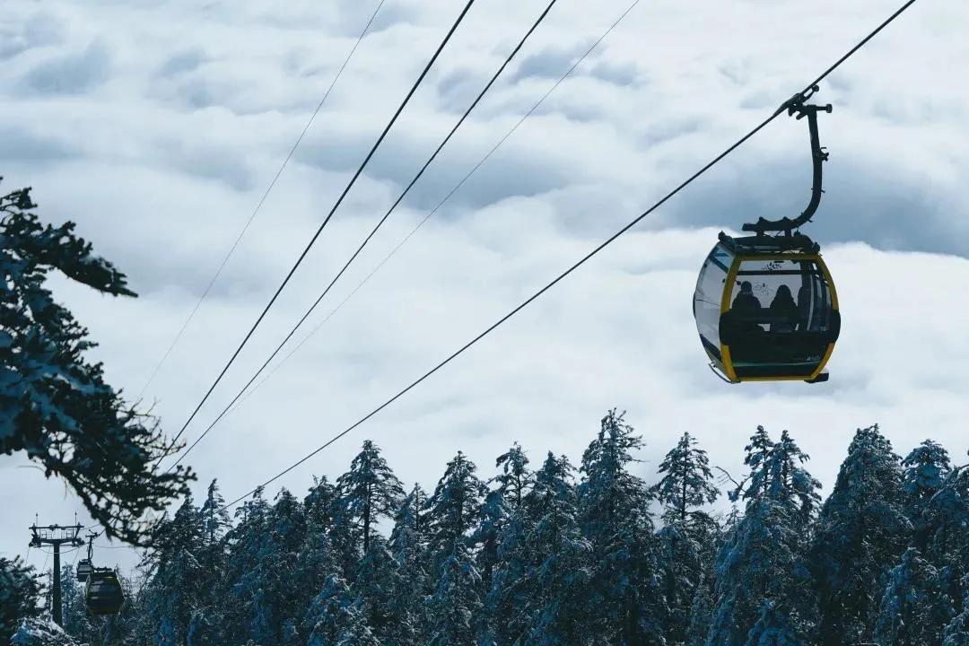 坐上這里的半開放式纜車上下行,目之所及都是純白一片,灑落在樹枝上,雪厚的地方還可以堆雪人啦!