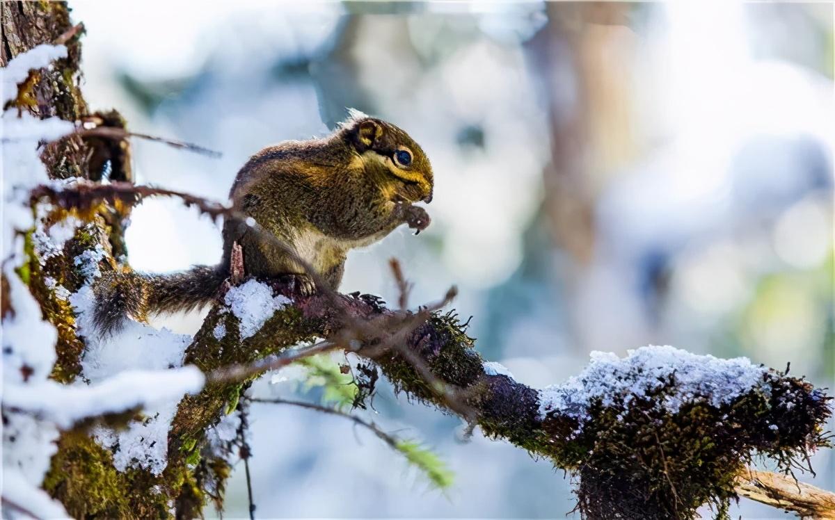 雪地中出沒的小精靈們比平時更容易看到,松鼠,鳥兒,仿佛點綴在山間的音符和雪花一起舞動。